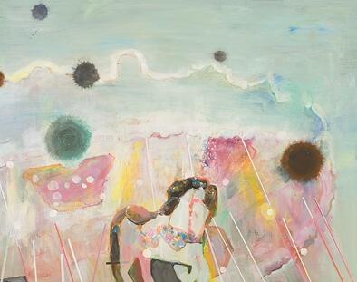 陸霄虹,現為南京藝術學院人文學院副教授、藝術管理系主任。出生于江蘇無錫的她長期浸染在江南深厚的文化積累中,在連接傳統與現代的道路上逐漸有了自己的藝術風格。她的作品天然有一種江南氣候的水潤與透明感,輕薄的色彩、大膽的線條、點線面的結合形成了一種奇幻的戲劇張力與浪漫情調。在似與不似之間、在寫實和抽象之間,那條界限始終不那么明晰,具有分寸感。
