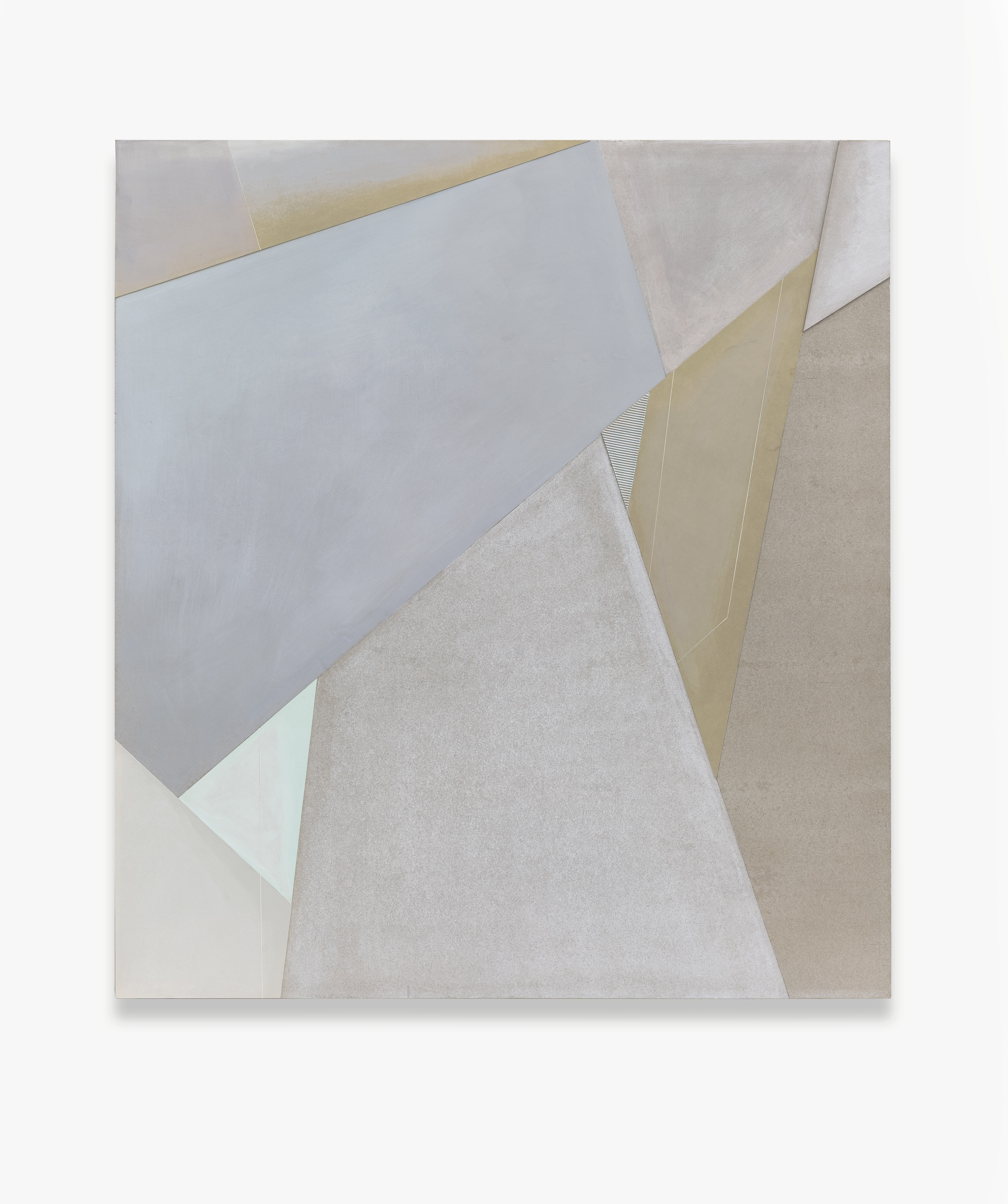 自2013年王豪開始以水泥作為個人創作媒介以來,三個系列“寂”、“樸”、“遠”并行展開。“寂”和“樸”強調水泥作品的靜態特征,不論是單件作品還是多件組合作品,在水泥材料的細微變化與色塊搭配上,力求傳達出一種寧靜、樸拙的整體氣息;“樸”系列在形式上更為豐富,不僅嘗試使用斜線、三角形乃至圓形,還探索富于中國古典韻味的形式表達(例如對中國古代手卷的模擬);“遠”系列的名稱則來源于中國傳統山水繪畫所特有的透視技法“三遠”概念,這系列作品意圖通過畫面的動態表現打破二維空間限定,拓展平面繪畫的深度與廣度,從美學意境上與高遠、深遠、平遠相融合。