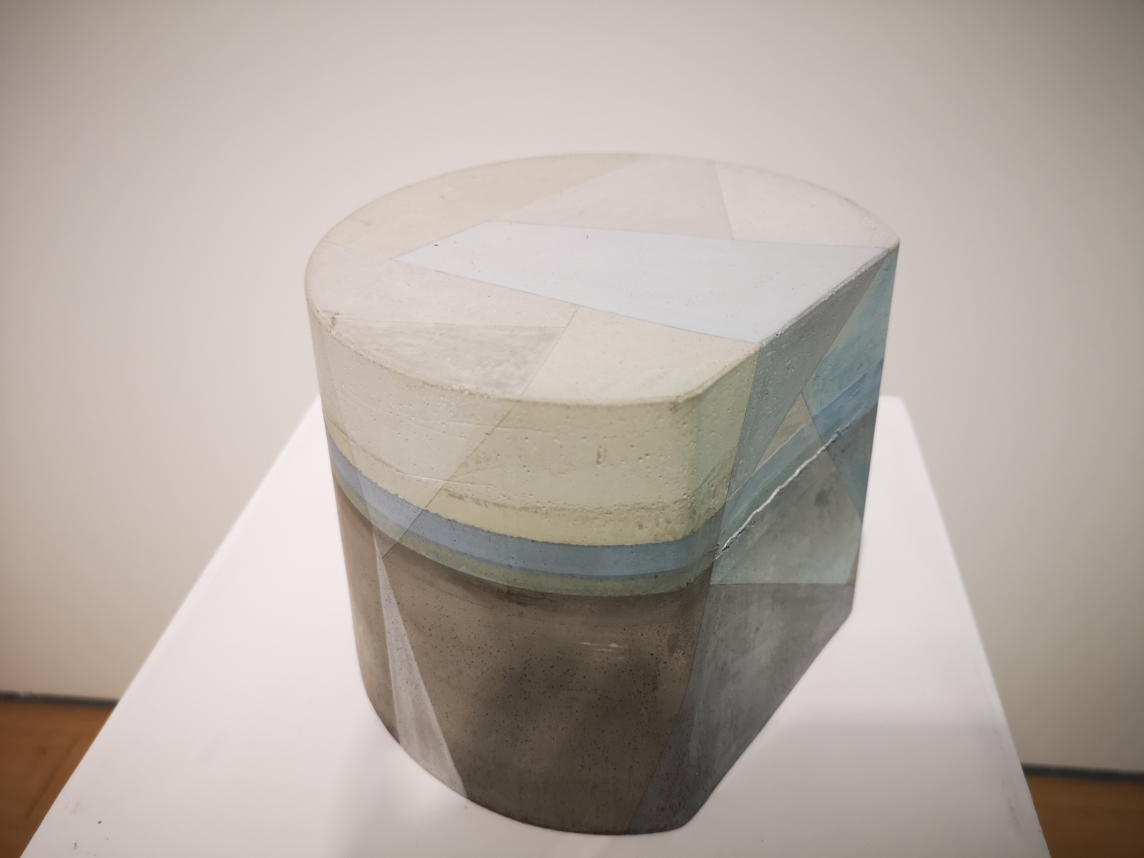 自2013年王豪開始以水泥作為個人創作媒介以來,三個系列“寂”、“樸”、“遠”并行展開。“寂”和“樸”強調水泥作品的靜態特征,不論是單件作品還是多件組合作品,在水泥材料的細微變化與色塊搭配上,力求傳達出一種寧靜、樸拙的整體氣息;“樸”系列在形式上更為豐富,不僅嘗試使用斜線、三角形乃至圓形,還探索富于中國古典韻味的形式表達;“遠”系列的名稱則來源于中國傳統山水繪畫所特有的透視技法“三遠”概念,這系列作品意圖通過畫面的動態表現打破二維空間限定,拓展平面繪畫的深度與廣度,從美學意境上與高遠、深遠、平遠相融合。
