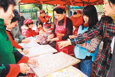 四季花城社區“奶奶廚房幫”為居民包餃子