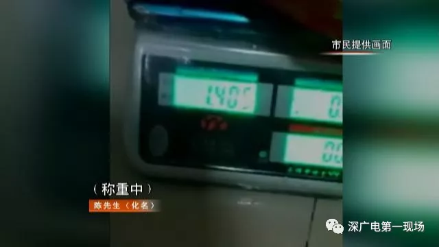 第二天中午,記者以消費者的身份,陪同陳先生夫妻倆,再次來到福永海鮮市場,購買海鮮的海鮮檔,商家介紹,這都是新鮮澳洲龍蝦,價格實惠,童叟無欺。這位海鮮檔攤販熱情的給記者挑選了一只澳洲龍蝦,放在自己攤檔的電子秤上稱重,加上塑料袋,大概是3斤8兩,這時陳先生妻子要求,海鮮檔老板到市場公平秤上進行稱重。