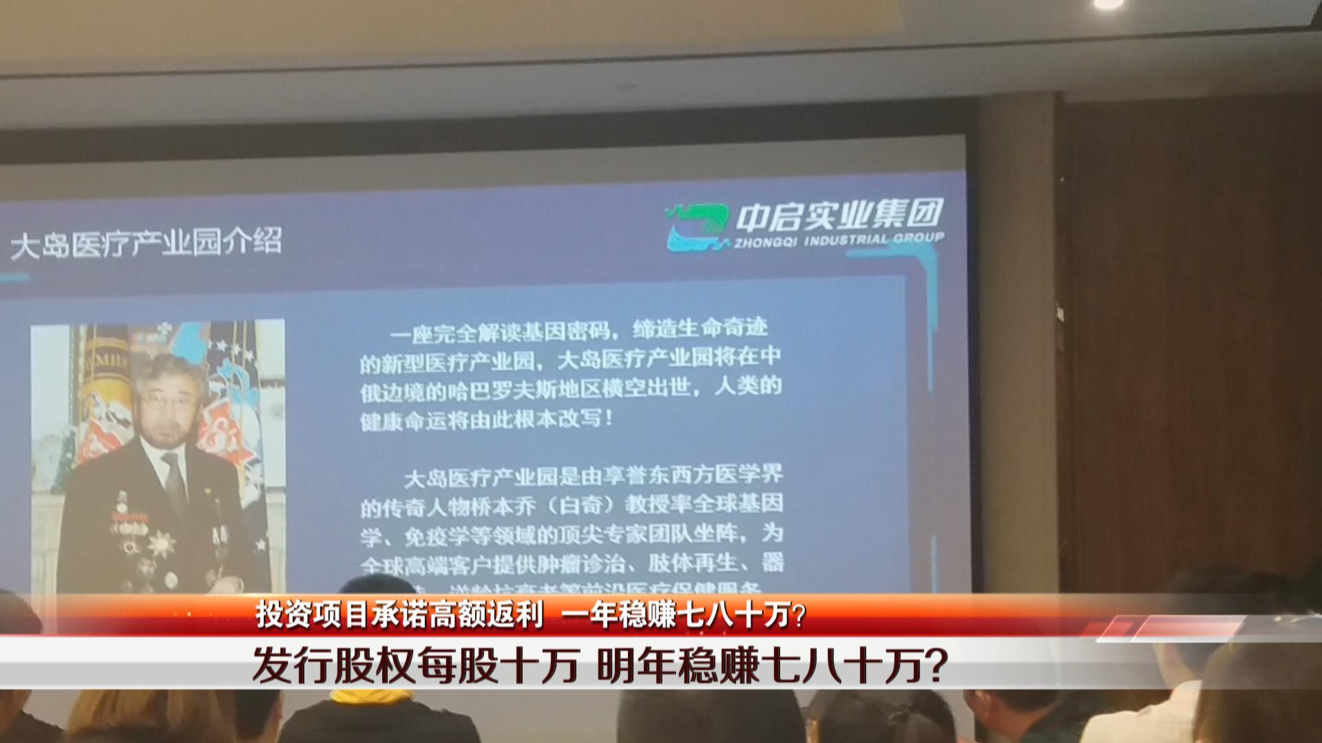 宣講人推廣的重磅項(xiàng)目是,企業(yè)跟一位姓白的教授合作的大島醫(yī)療產(chǎn)業(yè)園。她表示這位白教授因?yàn)闅v史原因失去了國籍,只能滯留在中俄邊界,因此大島醫(yī)療產(chǎn)業(yè)園也只能設(shè)在中俄邊界。