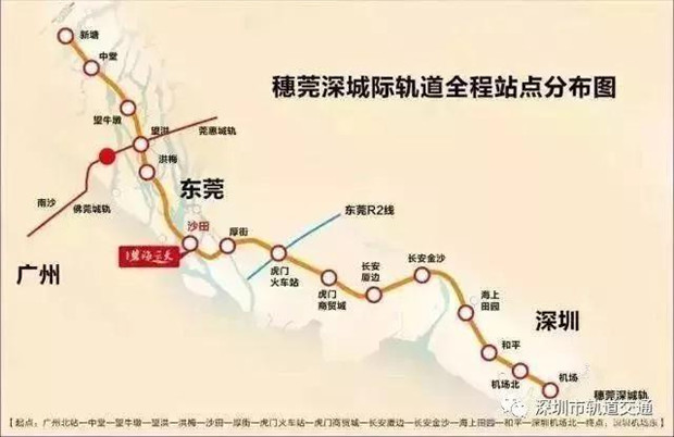 據了解,穗莞深城際線自廣深鐵路新塘站引出,跨越廣深鐵路后經由廣州、東莞、深圳一路向南敷設,止于深圳機場站,并預留南延至前海條件,正線總長約76.1公里。穗莞深城際鐵路是珠三角城際軌道交通網主軸,全線設站15座,其中深圳段17公里,設有海上田園、和平、機場北、機場4站。