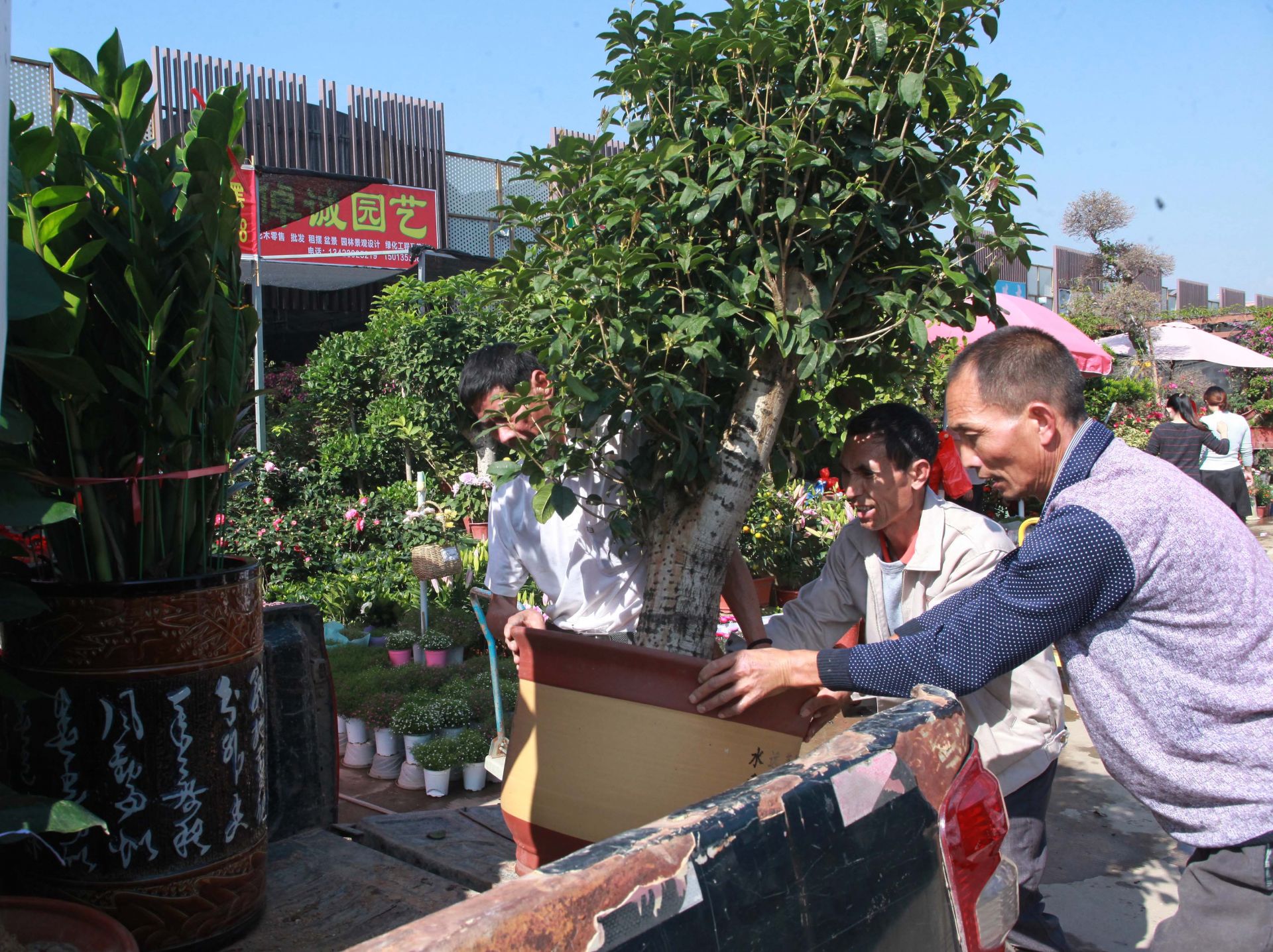 當(dāng)天的龍崗東部花卉世界,到處花團(tuán)錦簇,一盆盆顏色各異的年花喜迎初春,整個市場充滿了春天蓬勃的氣息。花農(nóng)們正忙著搬運(yùn)、擺放盆栽,不時有市民前來問詢,花卉運(yùn)輸一輛接一輛車,絡(luò)繹不絕,往來的客商頻頻詢問價格,已經(jīng)搶占先機(jī)的客商興高采烈地精心挑選,包裝搬運(yùn)……
