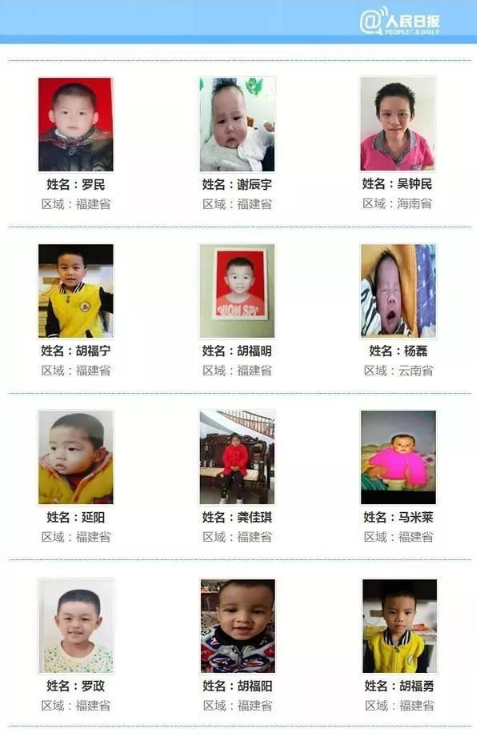 被拐兒童的名單和照片!