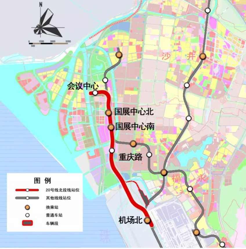 20號線北段起于寶安國際機場規(guī)劃T4航站樓,在規(guī)劃T4航站樓北側(cè),11號線東側(cè)設(shè)機場北站,與11號線、穗莞深城際線換乘。