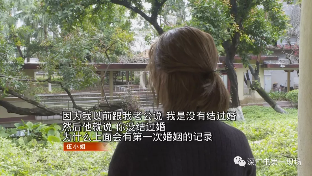 無奈之下,伍小姐只得再次來到深圳,打算為自己正名。記者和伍小姐首先來到寶安婚姻登記處,工作人員介紹,在婚姻登記過程中,男女雙方是無法隱瞞自己的婚史的。