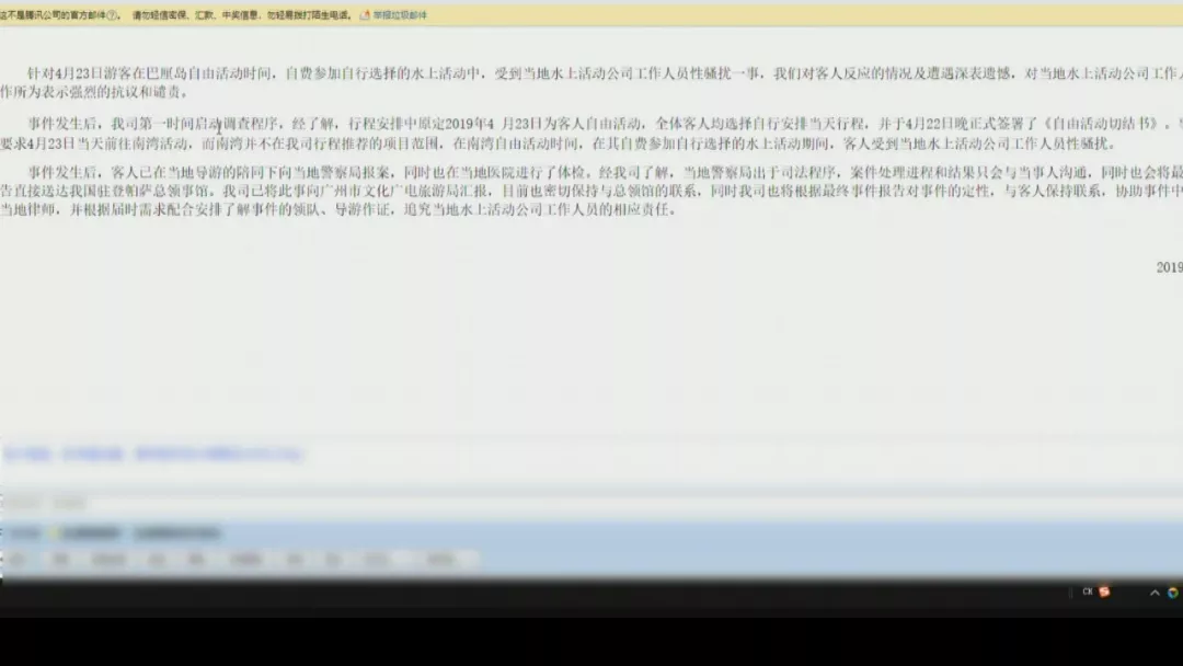 印尼方在26號召開了新聞發布會,確認了楊先生的女兒被侵犯的事實。據了解,嫌疑人今年29歲,是爪哇島人,目前在等待下一步的審判結果。隨后記者聯系到了南湖國旅的工作人員,對方表示不方便接受采訪,隨后發來了一個回應郵件。