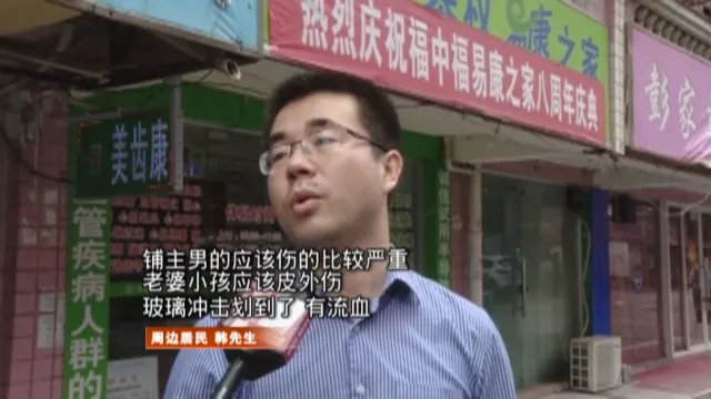 據目擊者稱,當時店鋪內有老板一家三口,以及一名女顧客,四人均有不同程度受傷。周邊居民馬上報警,并呼叫了救護車。