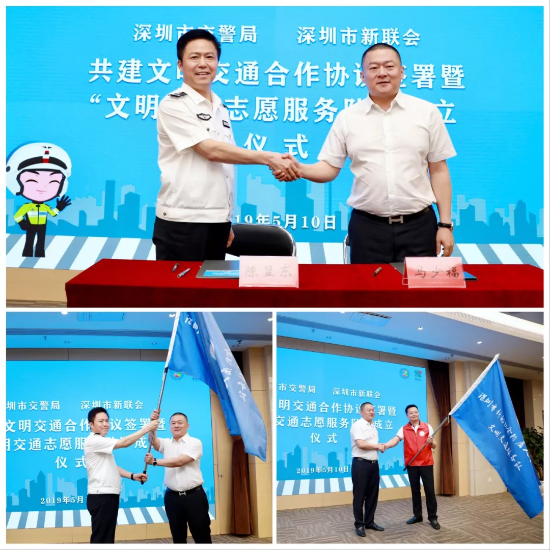 創(chuàng)文明交通城,做文明深圳人,新的社會階層人士在行動。5月10日,深圳市交警局與深圳市新的社會階層人士聯合會(市新聯會)成立“文明交通志愿服務隊”暨共建文明交通合作協議簽署儀式在深圳市公安局交通警察局舉行,市委統戰(zhàn)部常務副部長范坤,市交警局局長徐煒、副局長陳顯東,市政協常委、市新聯會會長馬少福等參加相關活動。
