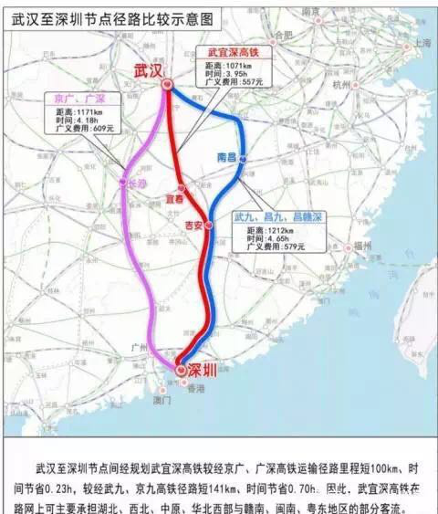未來還將新建武漢至深圳的高鐵,途經江西距離更近、時間縮短半個小時