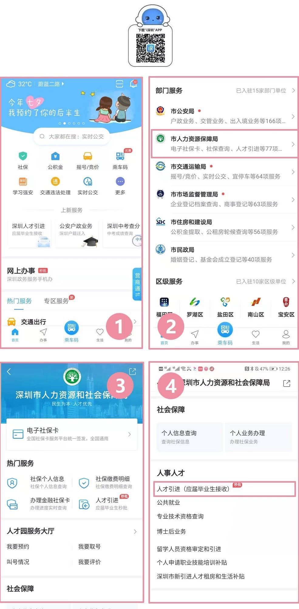 應屆畢業生辦理人才引進時,可以選擇下載“i深圳”APP在手機上辦理,路徑為:“i深圳”首頁-市人力資源保障局-人事人才:人才引進(應屆畢業生接收)。