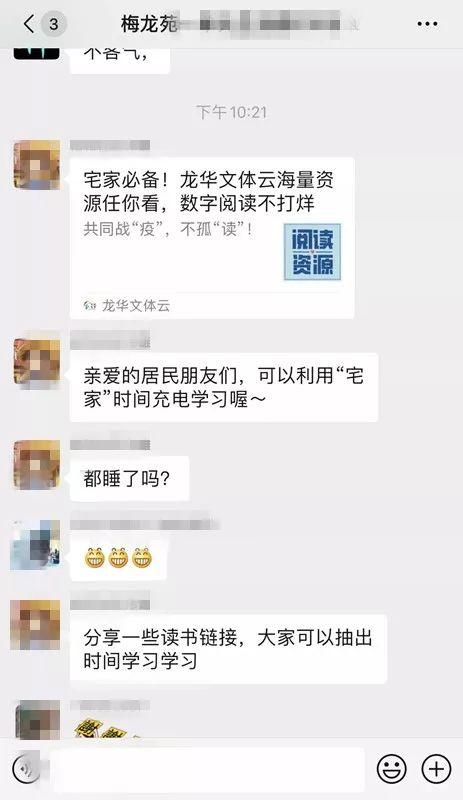 為緩解居家隔離人員情緒,豐富其精神文化活動,龍華街道還引導居民使用“龍華文體云”提供的免費數字資源庫進行線上學習,利用“宅家”時間“充電”,滿足居家閱讀需求,豐富精神世界,幫助居民充實快樂宅在家。