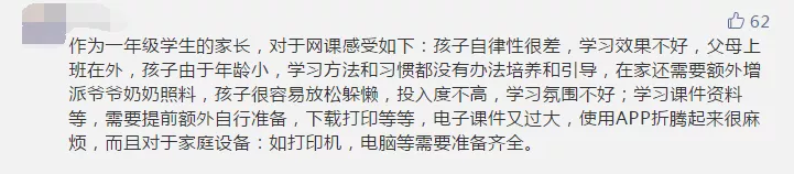 有些參與者則直接留言:由于孩子自律性差,建議低年級(jí)不上網(wǎng)課。