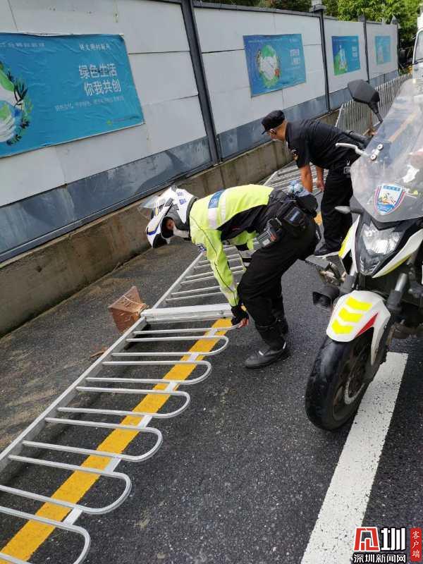 9月21日9時許,羅湖大隊黃貝中隊鐵騎隊員羅益華巡邏至仙湖路時,發(fā)現(xiàn)路邊近5米長的護欄倒地,路過的車輛紛紛降低速度避讓,嚴重影響過往車輛和行人的正常通行,安全隱患極大,羅益華立即與群眾一同將護欄扶正、歸位,交通隱患得到及時排除,道路也恢復暢通。