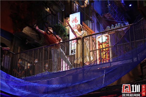 沿著新園路向前,就來到了羅湖東門商圈網紅打卡圣地:深圳文和友。舊舊的樓房加上復古牌匾,橋上的綠皮火車不時經過,讓人一秒穿越到上世紀九十年代......進入到深圳文和友的內部,復古港式、霓虹牌匾,隨手一拍都是港風大片。還有游戲廳、小吃街、市集、復古公交站、百貨店令人目不暇接....網紅茶飲茶顏悅色也在等著大家的到來。文和友內還有時長1小時的沉浸式戲劇——《綺夢》上演,演員表演張力十足,觀眾和演員距離僅1米,讓觀眾身臨其境。