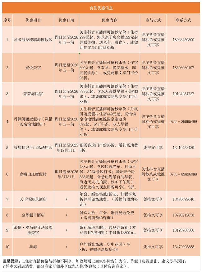 當(dāng)然,福利不止于此!專屬食住優(yōu)惠同步奉上,讓你玩得盡興,住得舒心,吃得滿足!