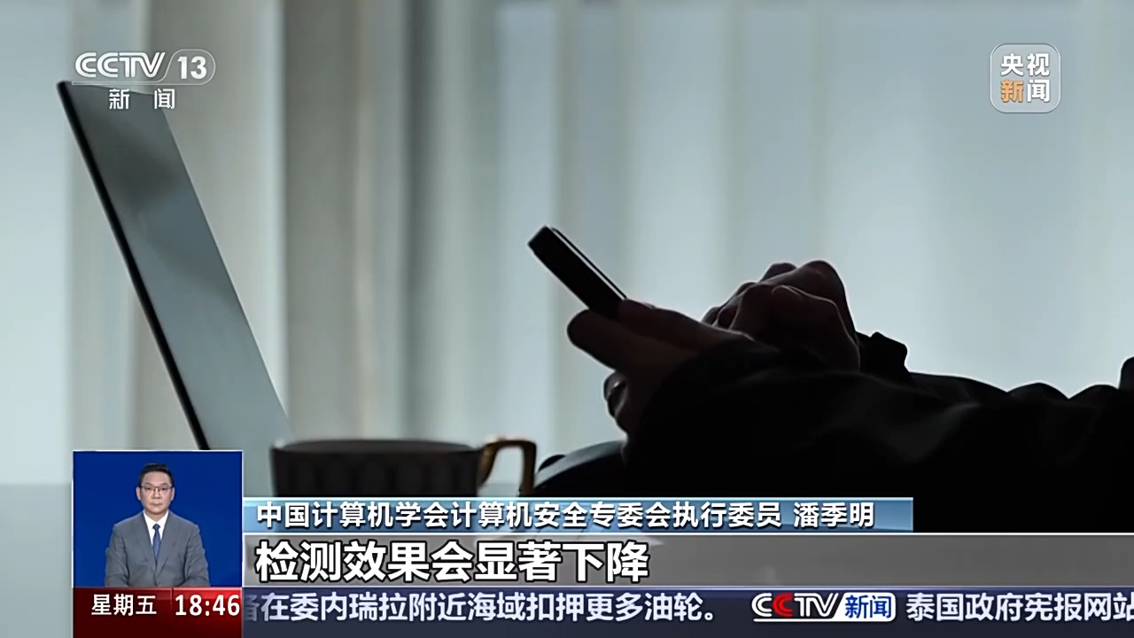 中國計算機學會計算機安全專委會執行委員 潘季明:首先是針對文本的統計特征分析技術,尋找AI寫作過于平穩、缺乏人味的“機器指紋”。其次是基于深度學習模型的檢測技術,通過對特定生成算法的缺陷進行識別,分析像素和頻域中存在的AI生成偽影,如紋理重復或特定圖案。第三是多模態融合檢測技術,利用大模型的通用理解能力來捕捉跨模態、高級語義上的不一致來實現。