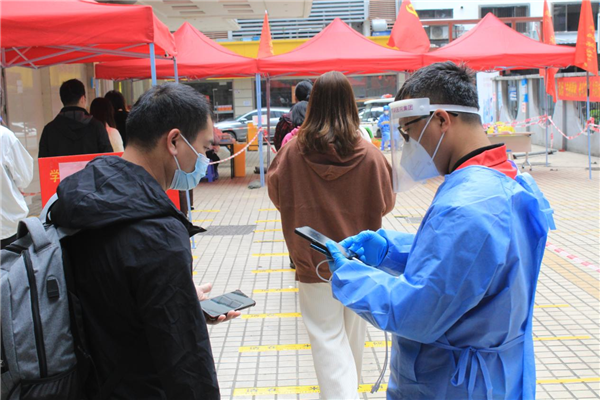 譚永飛是老圍社區的組織員,有著各種身份:核酸檢測點的錄入員、疫情防控中心的流調員,可謂“文武”雙全。