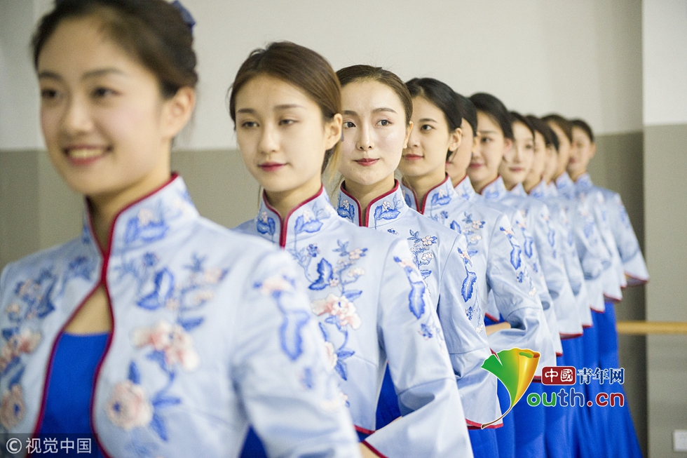 2018年10月15日,杭州,第五屆世界互聯網大會召開在即,來自浙江傳媒學院的禮儀志愿者們正在進行緊張有序的集中訓練。圖片作者:浙江日報 馮賀/視覺中國