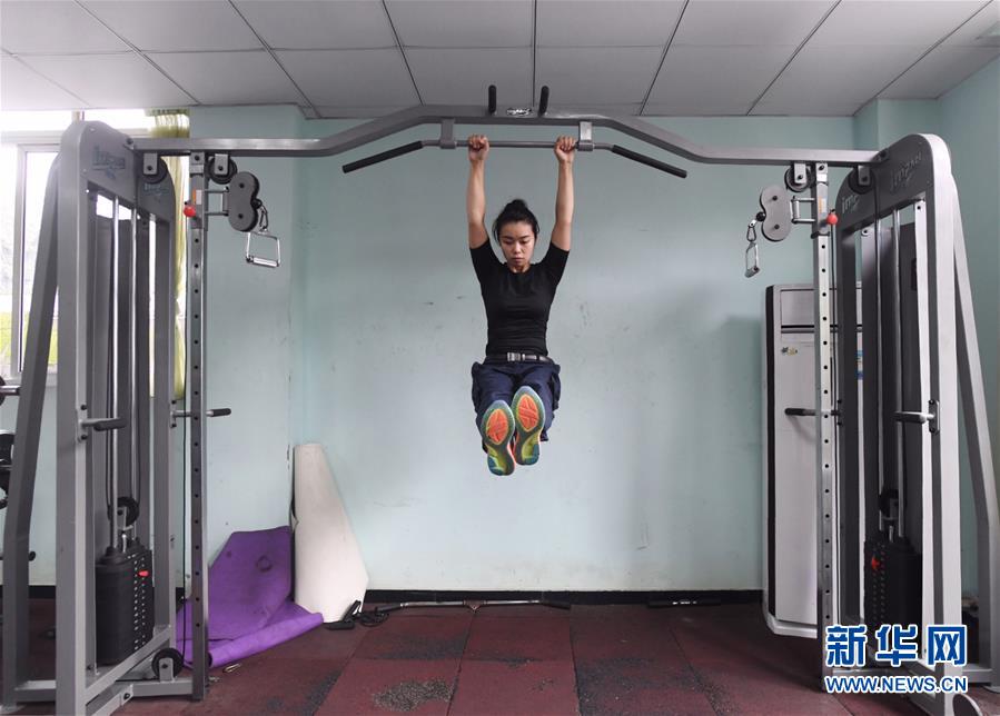 10月16日,湯春燕在健身房內進行體能訓練。 新華社記者王全超攝