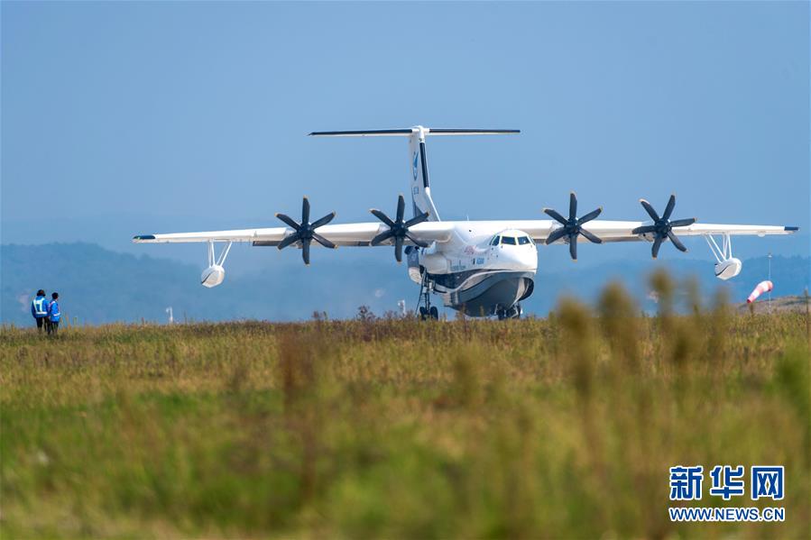 10月20日拍攝的完成首飛后的“鯤龍”AG600。新華社記者 程敏 攝