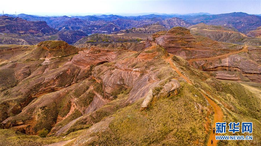 在黃土高原的陜西省延安市安塞區坪橋鎮王家灣,有一處峽谷丹霞地貌,是2017年陜西省地質調查院在陜北及渭北地區發現大規模丹霞地貌的一部分。這里的山勢頂部被黃土覆蓋,底部經流水下切侵蝕紅色砂巖外露,出露的巖石紋理如波浪,深秋中猶如一幅流動的畫卷。