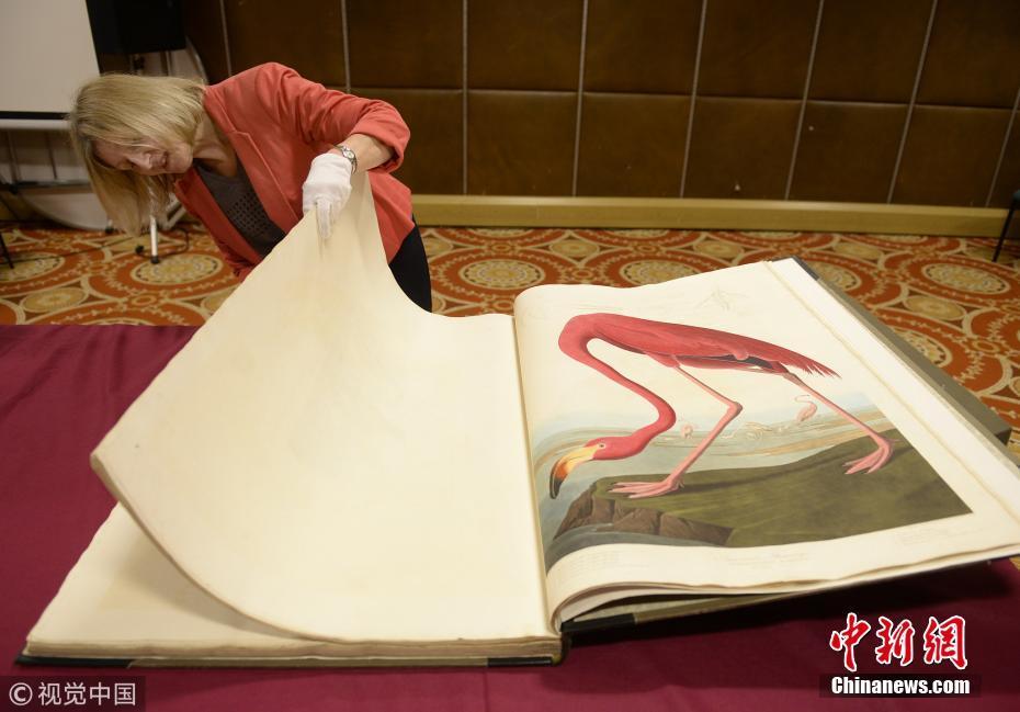 2018年12月12日消息,英國格拉斯哥,世界上最貴的印刷書——美國鳥類學(xué)家、畫家和博物學(xué)家詹姆斯·奧杜邦手繪的第一版《美國鳥類》被罕見取出米切爾圖書館保險庫公開亮相。圖片來源:視覺中國