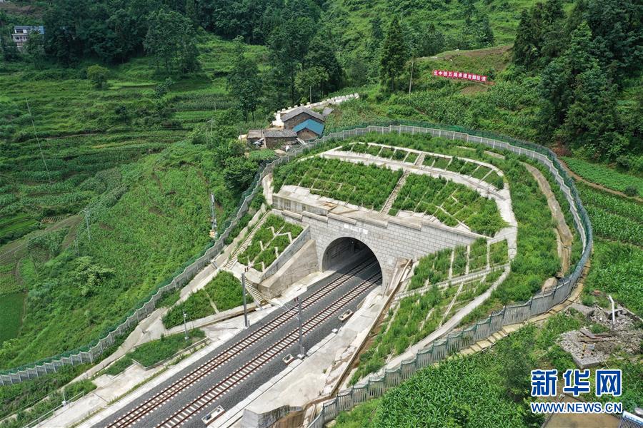 7月6日拍攝的安六鐵路巖腳隧道(無人機照片)。當日,新建貴州安六鐵路(安順至六盤水)聯調聯試工作進入收尾階段,開通前的各項準備工作已基本就緒。安六鐵路線路全長約125公里,設計時速250公里,為國家I級雙線客運專線。建成投用后,貴陽至六盤水的鐵路旅行時間可從現在的3.5小時縮短為1小時左右,貴州省六盤水市將全面接入全國高鐵網。新華社記者劉續攝