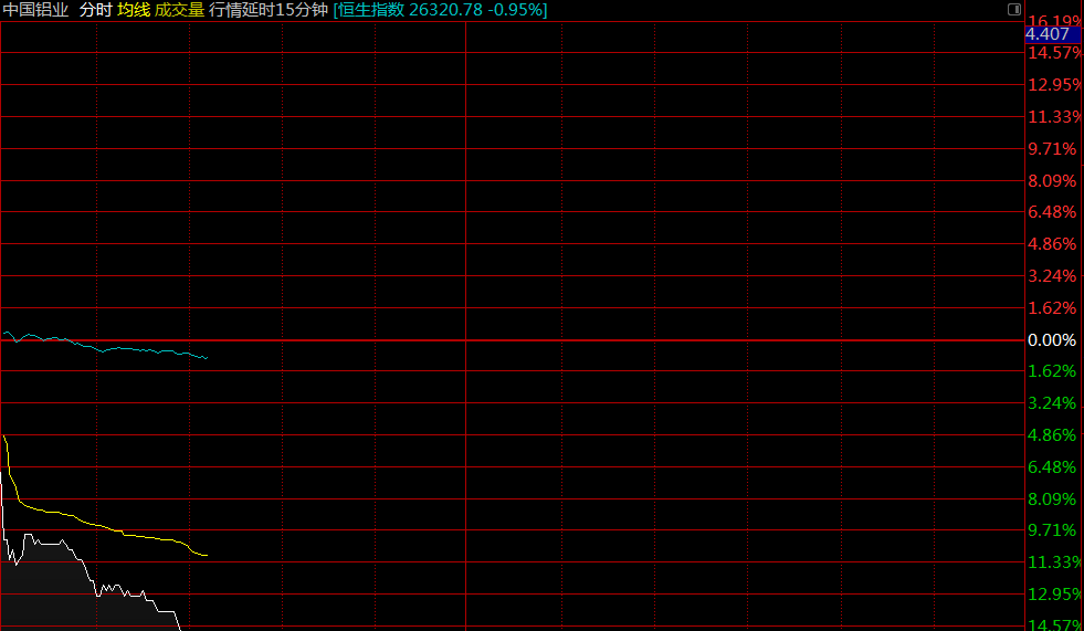 智通財經APP獲悉,中國鋁業(02600)H股早盤急挫12%,現價與A股表現背馳,A股漲0.99%。截至9時58分,跌12.27%,報價3.36港元,成交額1.23億。