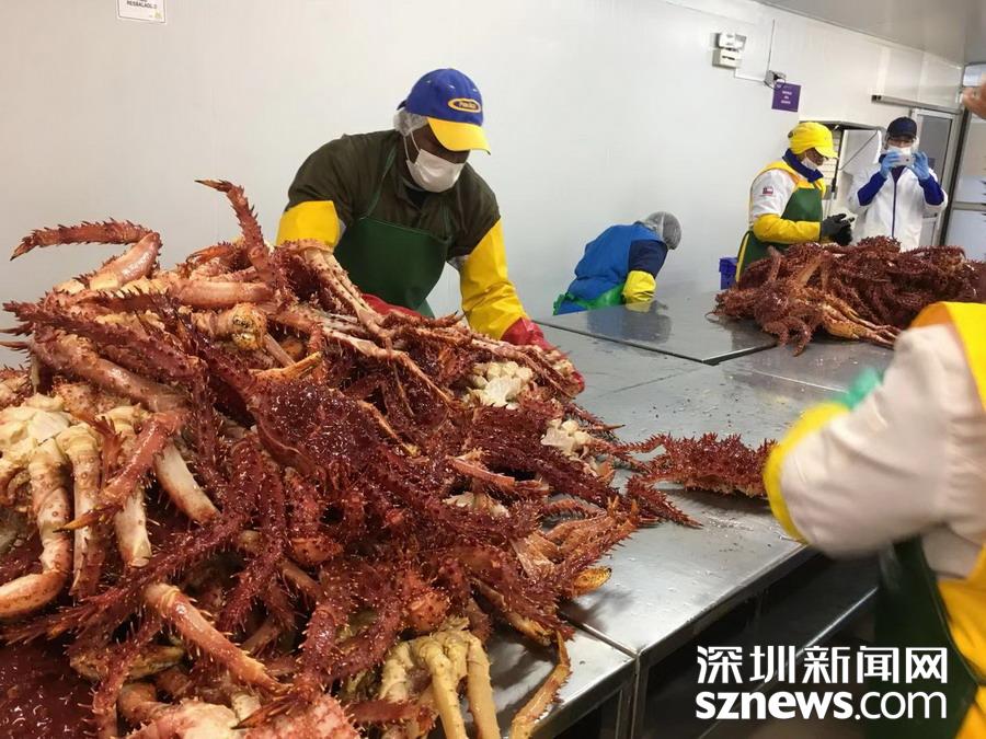 智力蜘蛛蟹加工基地, 產于南極洲海域。 李仁奇 攝