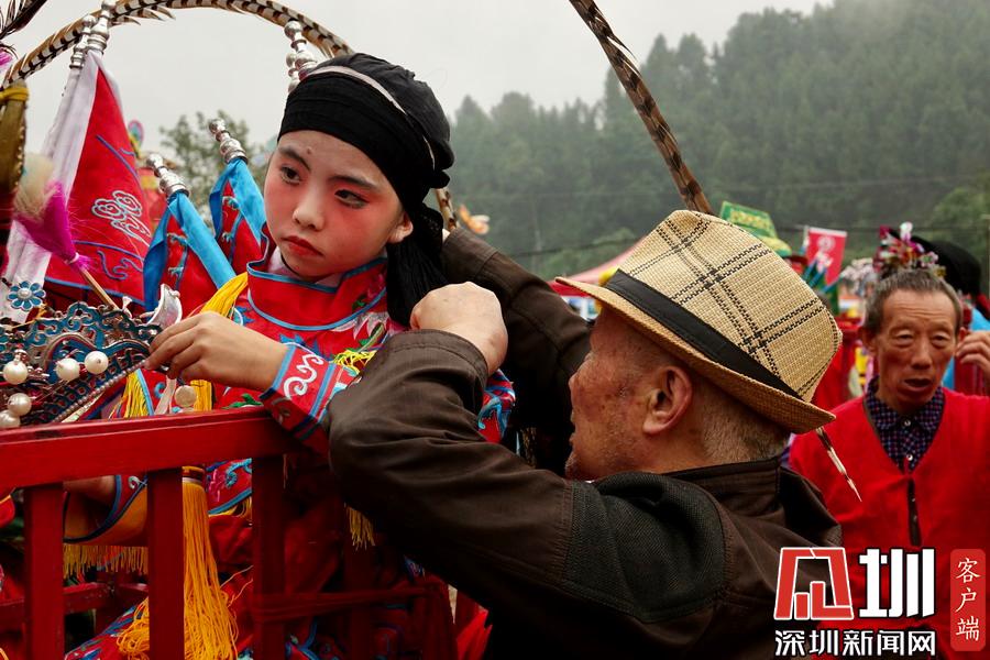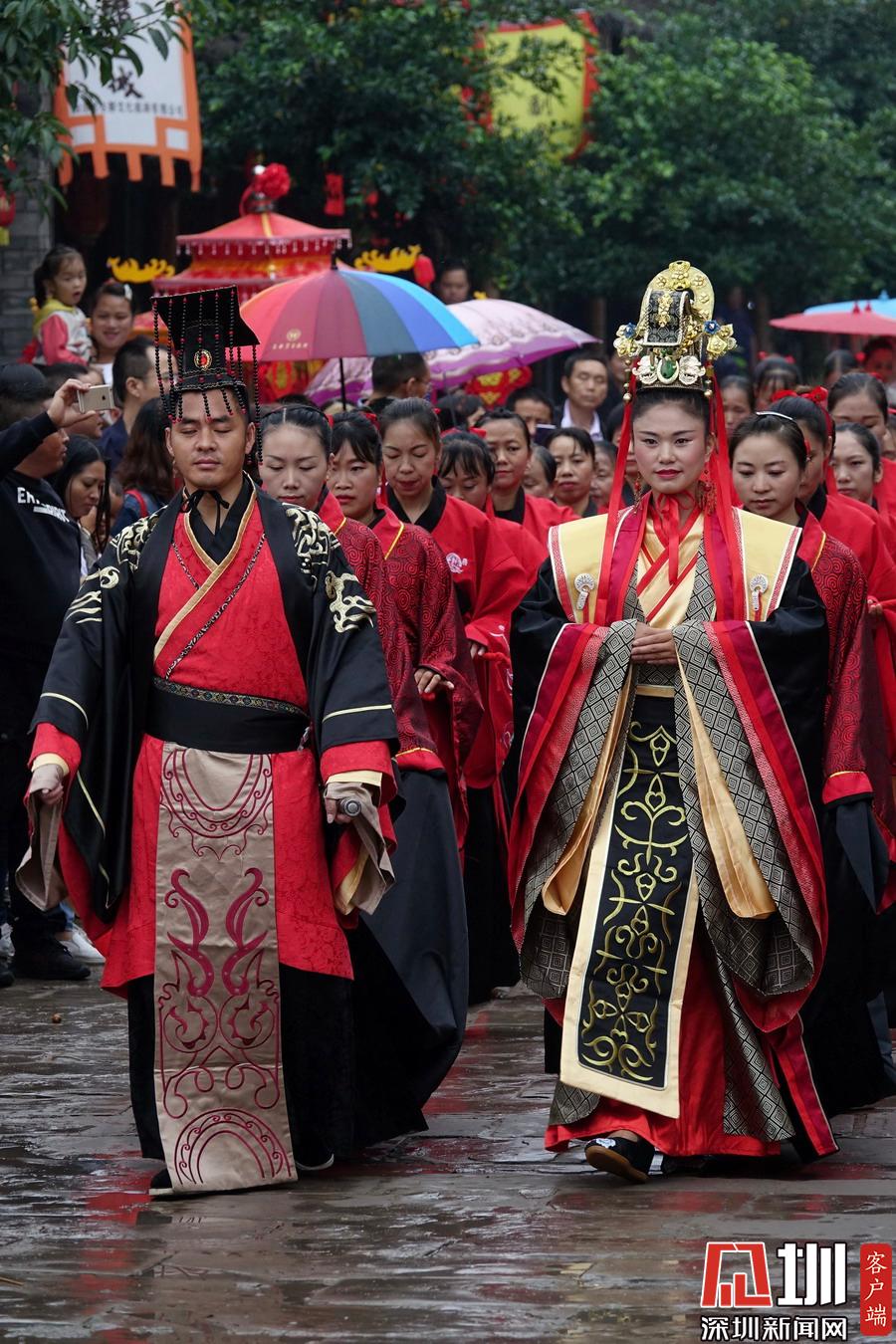 郪江古鎮古典風格的迎賓儀式和民俗風情展示。李仁奇攝