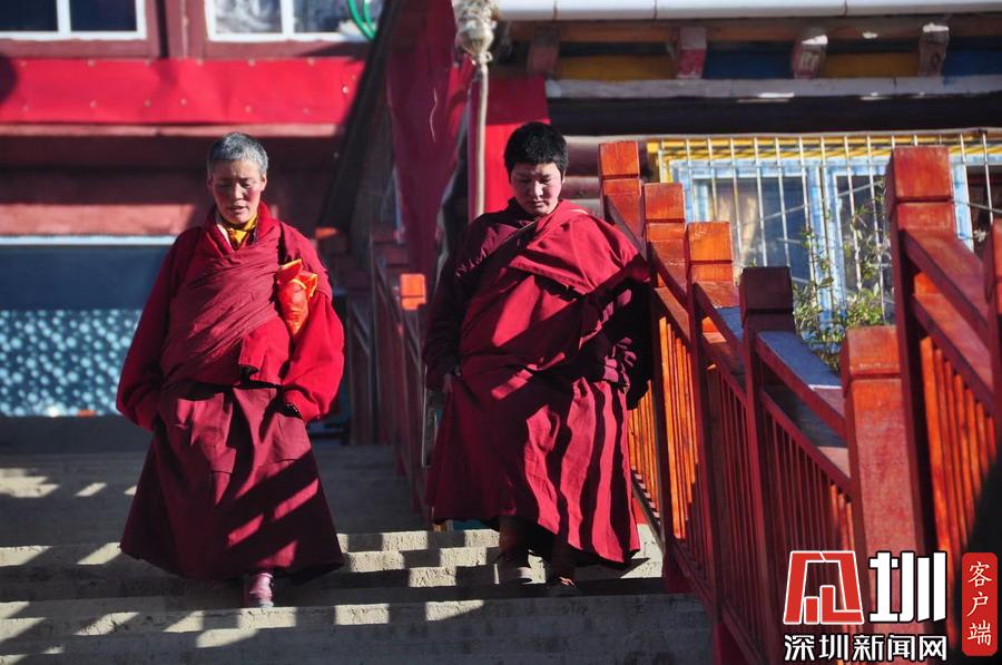 谷底和山梁上分布著幾座寺廟和佛堂,裝飾考究,金碧輝煌。李仁奇攝