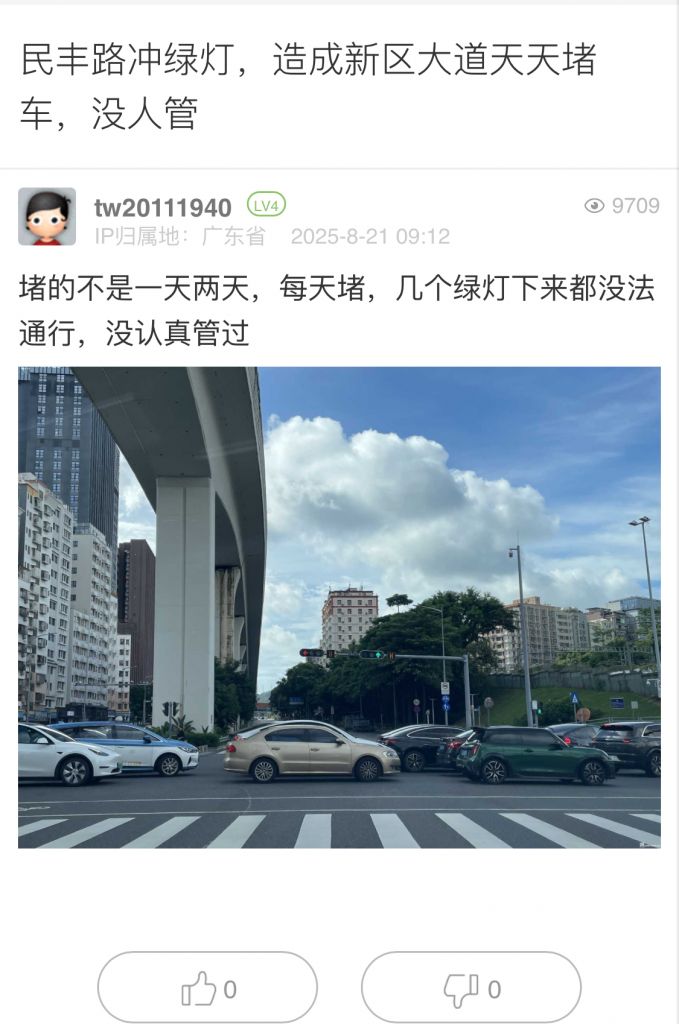 16. 帖文《民豐路沖綠燈,造成新區大道天天堵車,沒人管》