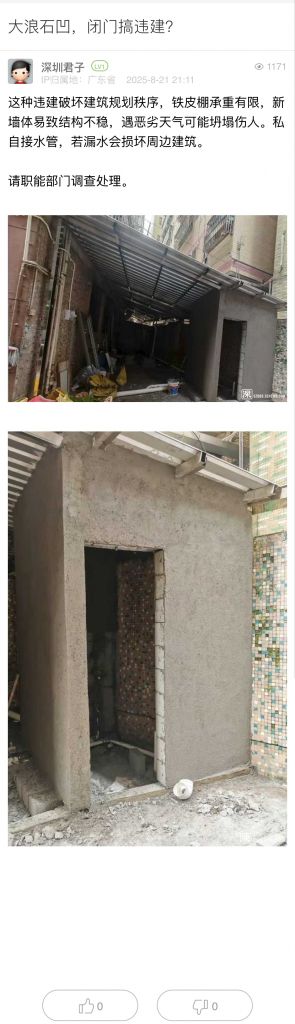 5. 帖文《投訴龍崗區南灣街道布沙路71號長期明顯違建!》