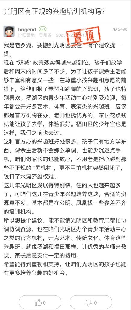 21. 帖文《光明區有正規的興趣培訓機構嗎?》