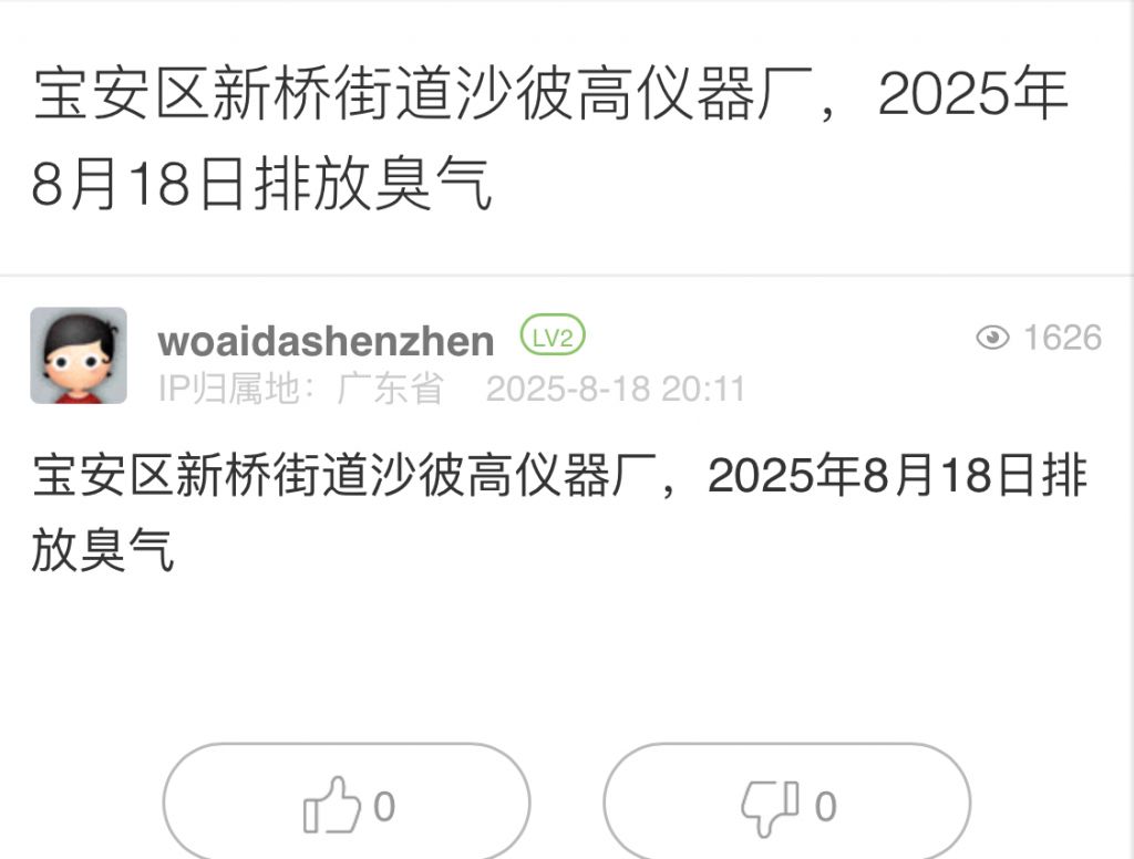 4. 帖文《寶安區新橋街道沙彼高儀器廠,2025年8月18日排放臭氣》
