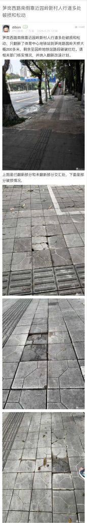 34. 帖文《筍崗西路南側靠近園嶺新村人行道多處破損和松動》