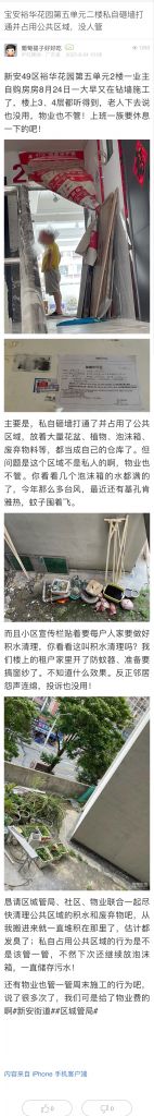 37. 帖文《寶安裕華花園第五單元二樓私自砸墻打通并占用公共區域,沒人管》