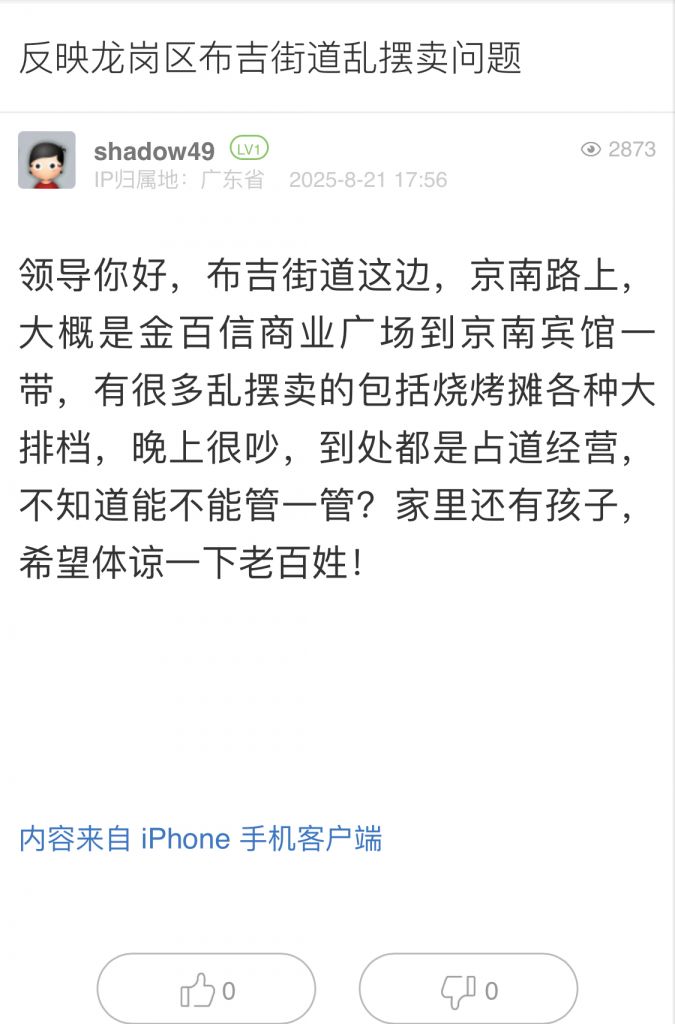 22. 帖文《反映龍崗區布吉街道亂擺賣問題》