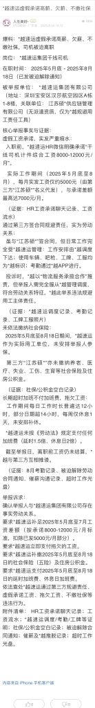 39. 帖文《*越速運虛假承諾高薪、欠薪、不繳社保》